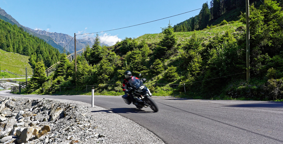 Franz war ganz überrascht, wie agil seine GS ist, wenn man ihr den richtigen "Kick" (Lenkimpuls + Stützgas) verpasst und konnte garnicht genug bekommen von Kurven, Kehren und Serpentinen...